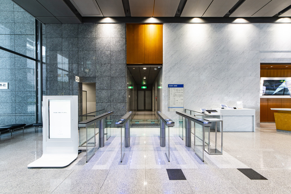 次に、RECEPTIONISTとセキュリティゲートを実際に連携いただいている株式会社丸井グループ(東京都中野区)の本社ビルでの入館方法を写真とともに紹介します。